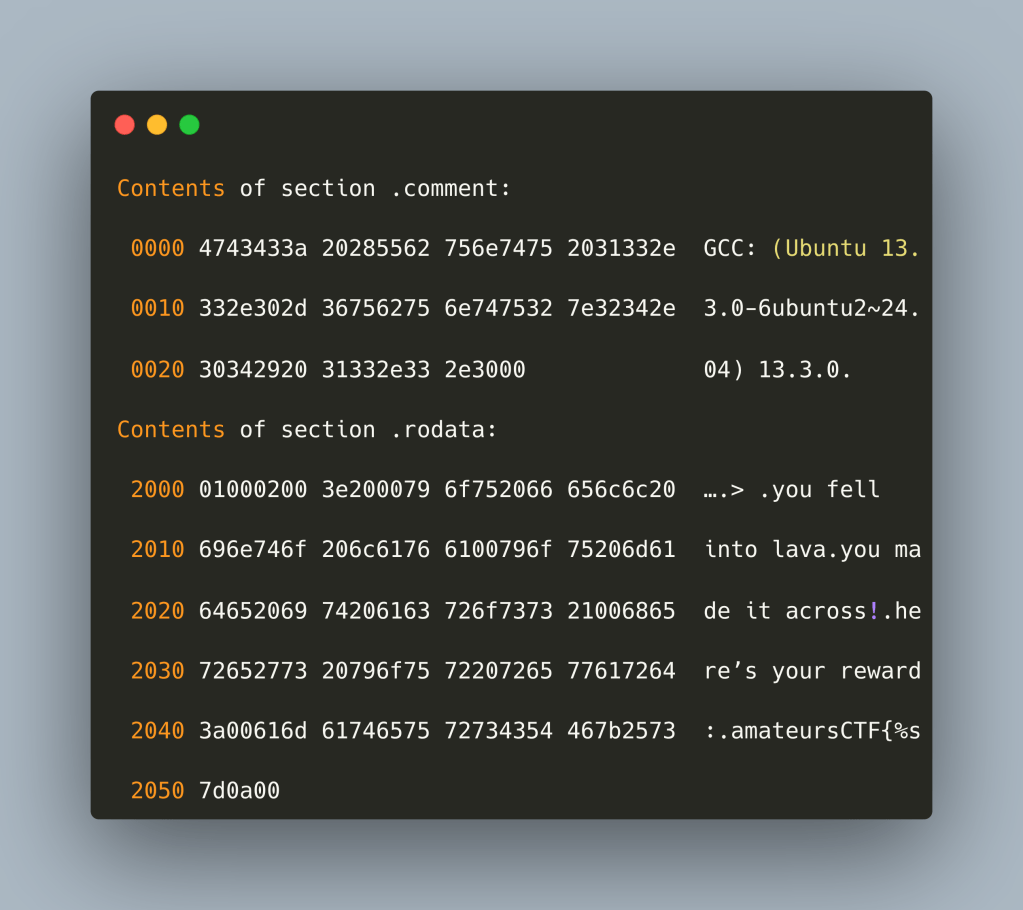 One of the most interesting ones I have seen was recently, the “floor is lava” challenge from Amateurs 2025 CTF. I want to share my discovery in solving said challenge, step by step.
